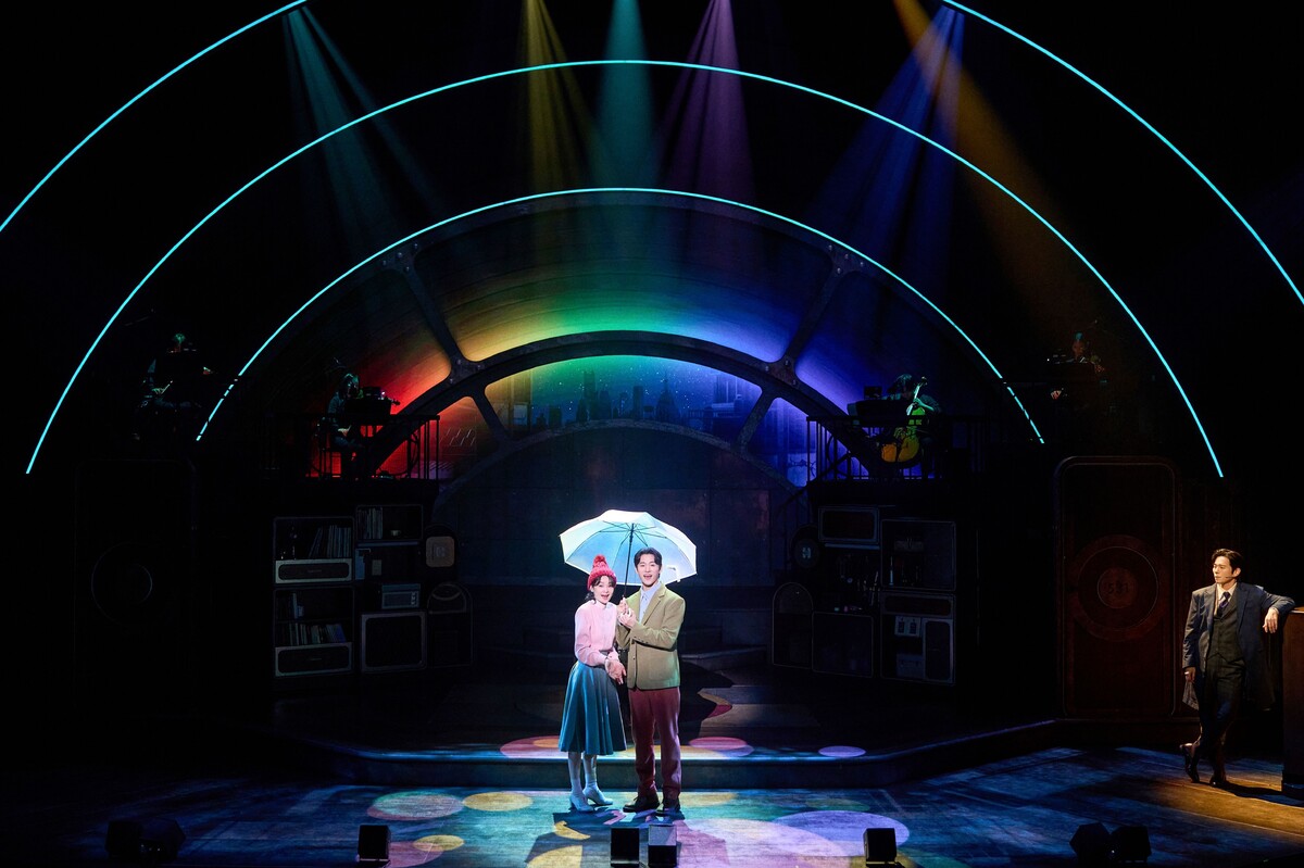 이번 공연은 350석에서 550석으로 극장의 규모를 키우면서 올리버와 클레어의 공간이 더 구체적으로 구현됐다. 낡은 레코드판이라는 테마를 중심으로 미래적인 정서와 오래된 정서가 공존하는 특징을 이어가되, 영상 스크린을 넓히고 조명도 배우들의 감정선을 더욱 섬세하게 담을 수 있게 변화가 이뤄졌다. 규모의 확장으로 이루어진 연출적 변화에도 어쩌면 해피엔딩이 전하고자 하는 본질적인 메시지는 그대로다.